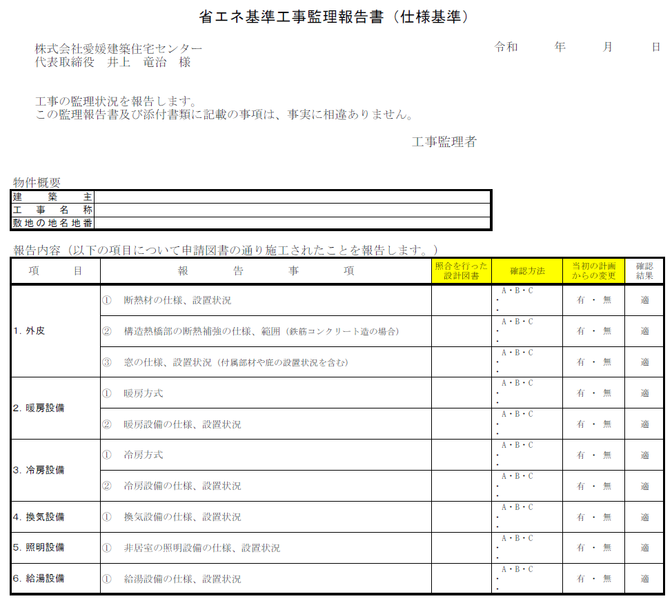 2025年4月改正法対象建築物の完了検査について、省エネ基準工事監理報告書をご提出いただいておりますが、