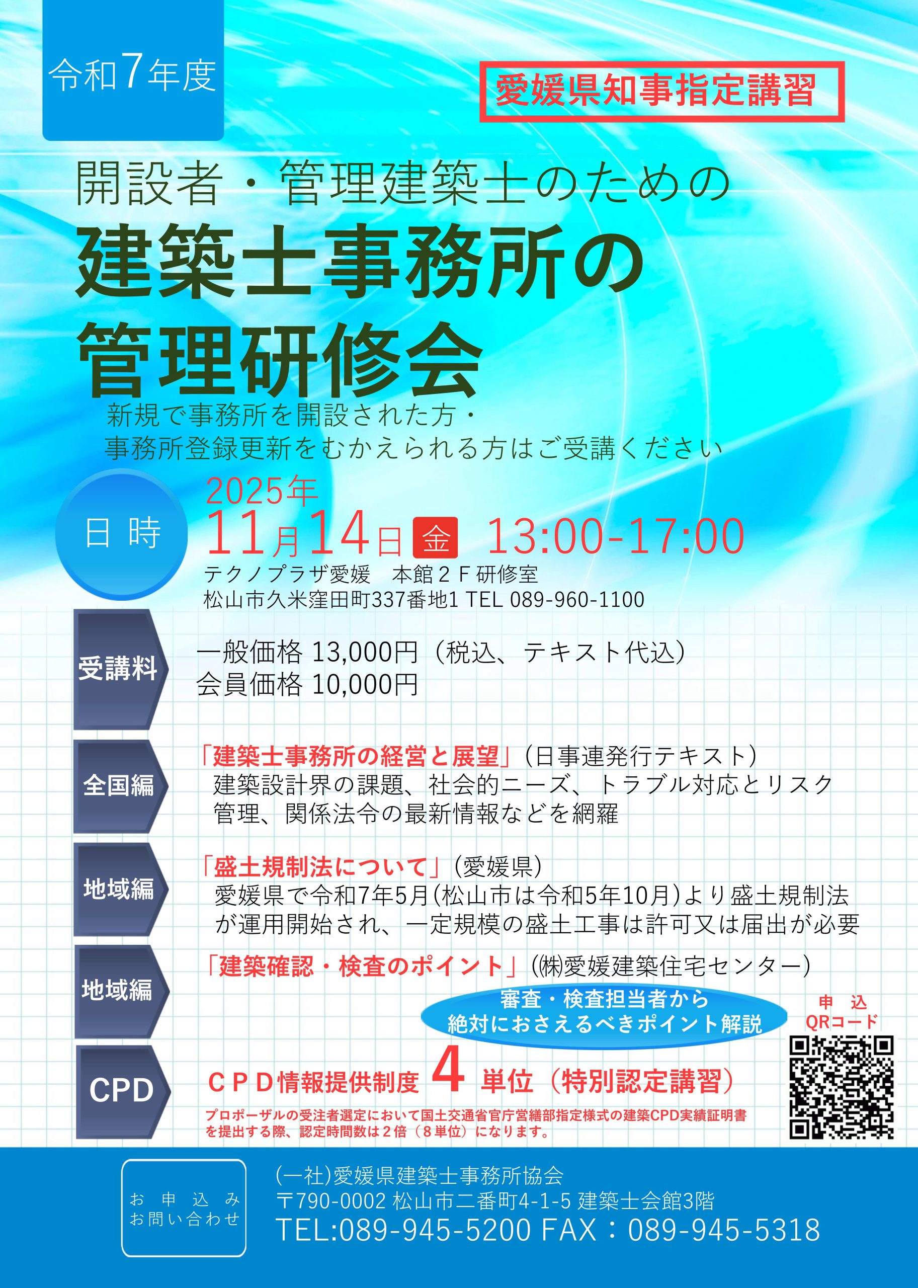 開設者・管理建築士のための建築士事務所の管理研修会が開催されます。